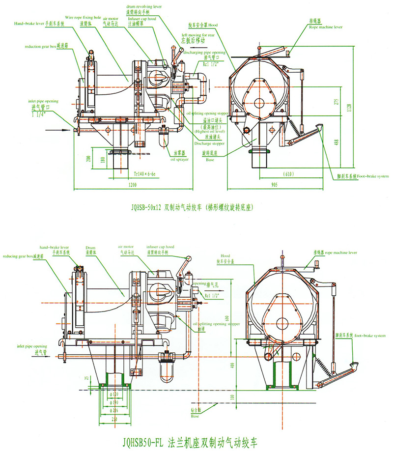 JQHSB50*12 系列 旋转底座双制动气动绞车